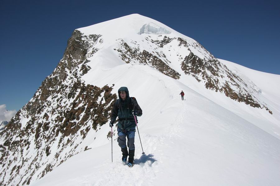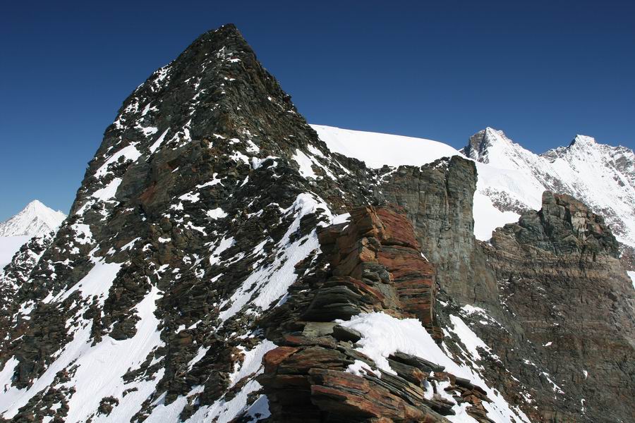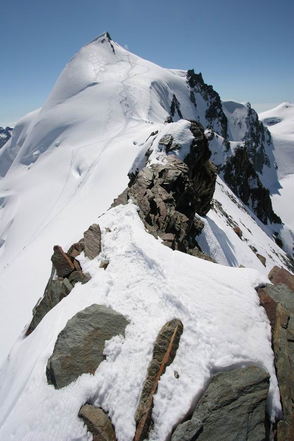 07-skalni hrbet, po nemz se musi prejit pri vystupu na Alphubel (vzadu, 4206m).jpg